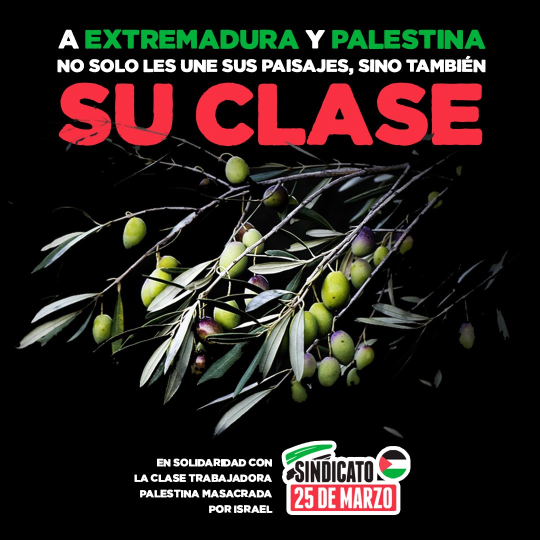 Desde el Sindicato 25 de Marzo queremos respaldar el conjunto de convocatorias que se realizarán en Extremadura este miércoles 15 de octubre en solidaridad con el pueblo palestino, incluyendo el derecho a secundar la jornada de huelga general de 24 horas convocada por diversas organizaciones y con la que somos plenamente solidarios.